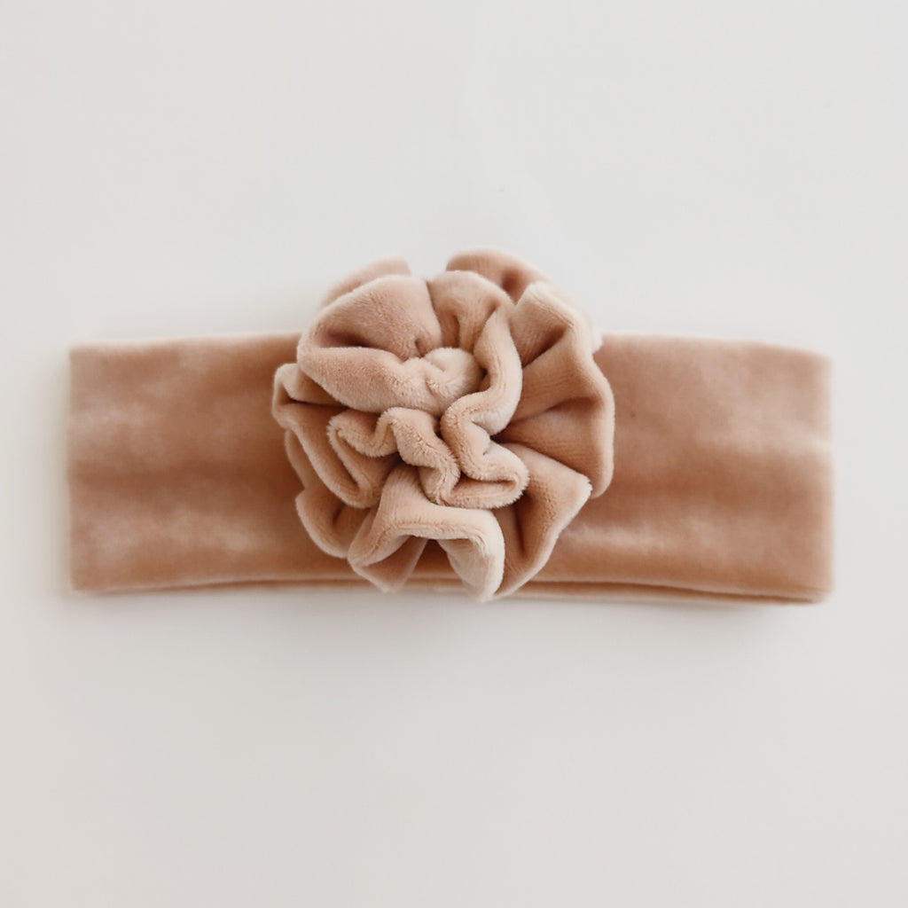Χειροποίητη, βρεφική, βελουτέ κορδέλα στο χρώμα της πούδρας με υπέροχο λουλούδι φτιαγμένο στο χέρι!
