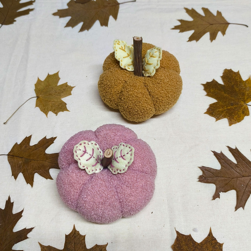 Μαγικό κουτί δημιουργικότητας με 2 μεγάλες λούτρινες κολοκύθες σε δύο υπέροχα φθινοπωρινά χρώματα, κάμελ και σάπιο μήλο.